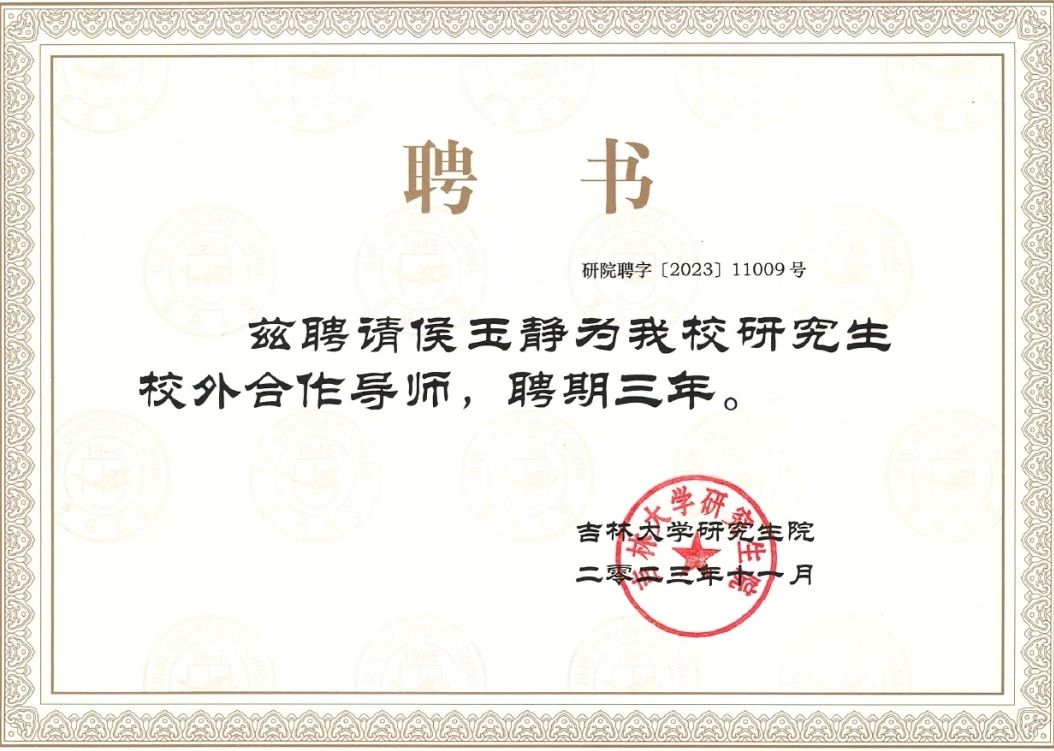 集佳合伙人侯玉静律师受聘为吉林大学研究生校外合作导师