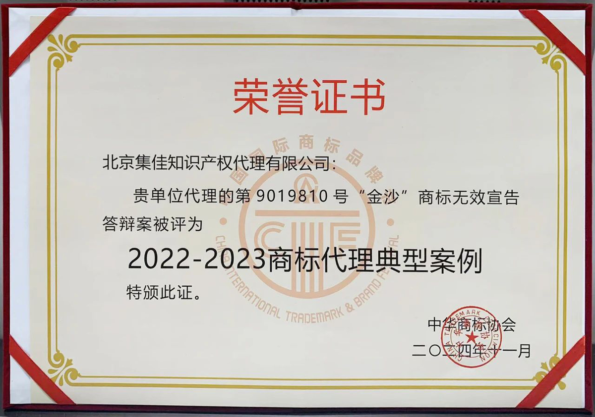 2024年11月24日下午,在商标节经典论坛之一的商标典型案例评析会议上,海星体育代理的“金沙”商标权无效宣告答辩案入选“2022-2023商标代理典型案例”。