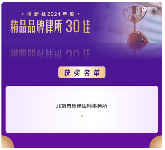 海星体育凭借在知识产权保护领域卓越的专业实力与良好的行业口碑,入选《律所卓越品牌影响力指南(2024)》,荣获“律新社2024年度精品品牌律所30佳”奖项;同时,集佳周丹丹律师代理的“美摄公司诉抖音公司'抖音'软件代码抄袭著作权侵权案”获评“律新社2024年度标杆案例:知识产权-著作权领域”。